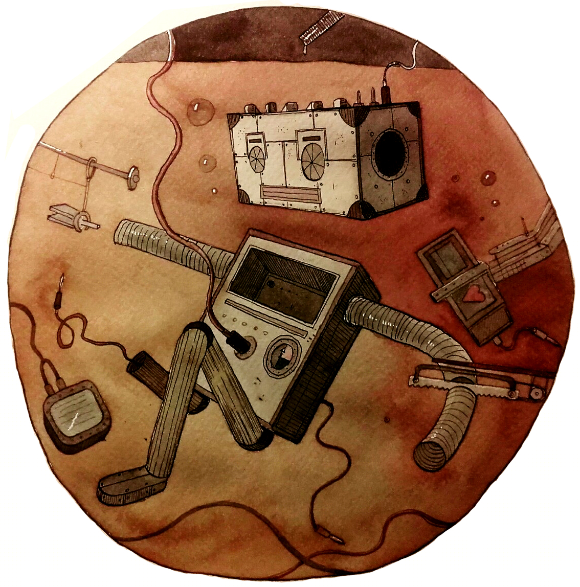 Un ptit dessin sur le thème du cordon ombilical fait à la plume (encre noir et sépia) et aquarelle.
